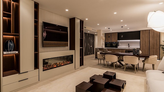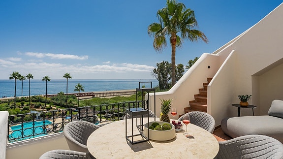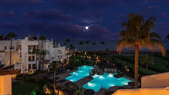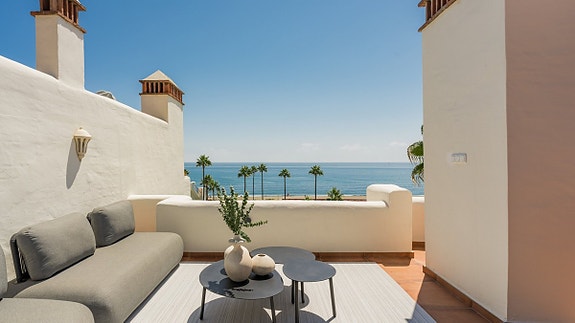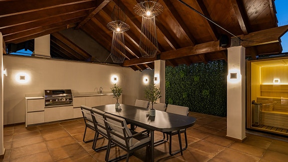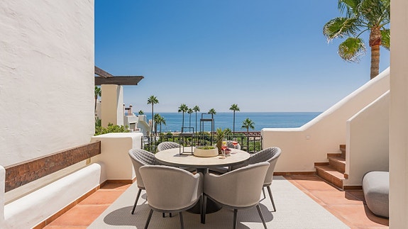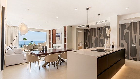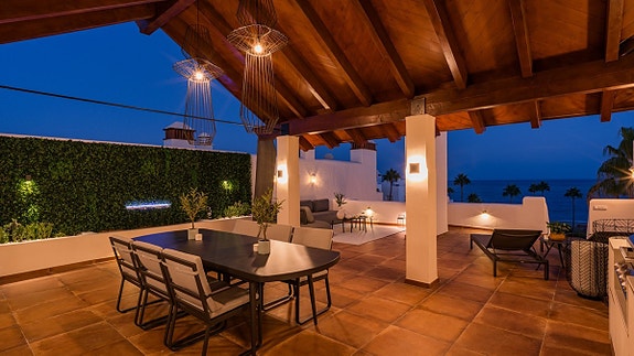 Fantastisk penthouse med fire soverom og tre bad. Leiligheten har nylig blitt totalrenovert. Alle rommene er nøye innredet og har mange luksuriøse detaljer som garderobeskap, dusjkabinett, frittstående badekar, Bang & Olufsen lydanlegg og moderne peis. Den imponerende takterrassen tilbyr nydelig havutsikt over Middelhavet og er utstyrt med spisestue, velvære- og avslapningsområde. Eiendommen ligger i gangavstand til flere gode restauranter samt den nye Laguna Village og har direkte tilgang til promonaden og havet. Komplekset har et fantastisk bassengområde med en snackbar, tropiske hager og 24/7 vakthold. Til eiendommen følger en underjordisk parkering og en bod.