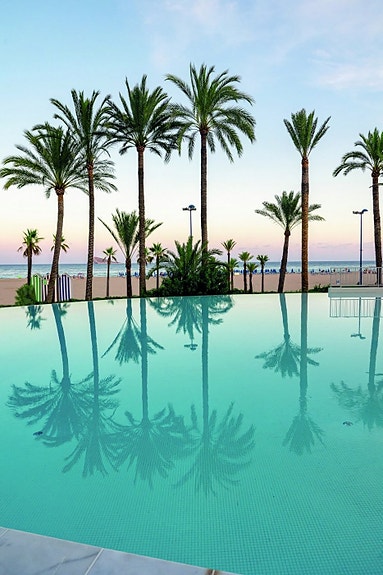 Disse leilighetene ligger rett ved siden av det historiske Gran Hotel Delfin og har en flott beliggenhet i første linje ved Poniente-stranden. Det spesielle med dette stedet er at bygningen er litt tilbaketrukket fra stranden, så det er mer grøntområder rundt, og det er til og med et felles svømmebasseng som ser ut som det går i ett med havet.