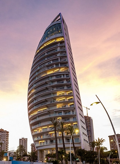 Nye leiligheter til salgs på Poniente-stranden i Benidorm. Leilighetene har eksepsjonelle kvaliteter og du kan velge mellom leiligheter med 2, 3 eller 4 soverom, fordelt over 20 etasjer. Alle leilighetene har fantastisk utsikt over havet, store terrasser, parkeringsplasser i underetasje og ekstra lagringsplass.