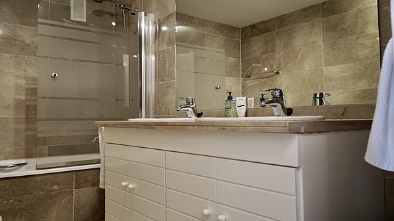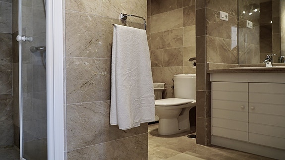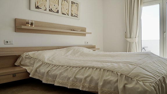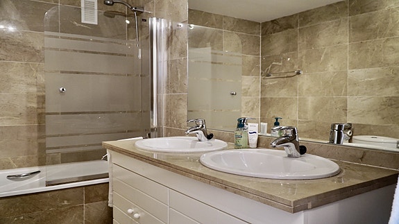Hovedsoverommet har utgang til terrasse, stort bad med badekar, separat dusjkabinett, doble servanter, toalett og bidet. De to andre soverommene inneholder 2 enkeltsenger som kan settes sammen til dobbeltseng, store innebygde garderober og skuffer. Begge har tilgang til terrasser, og de deler et fullt utstyrt bad med badekar, dusj, doble servanter, toalett og bidet. I tillegg er det et gjestetoalett med vask.