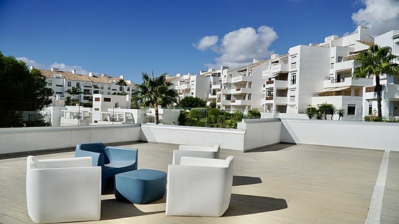 Denne eksklusive leiligheten ligger i et moderne boligkonsept, Golf Gardens Miraflores II, i første linje til Miraflores Golf.Innen kort gangavstand fra leiligheten ligger Las Terrazas kommersielle senter med barer, restauranter, supermarked og minibank.