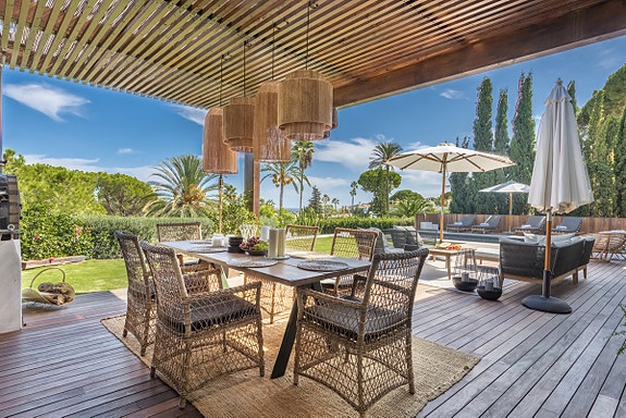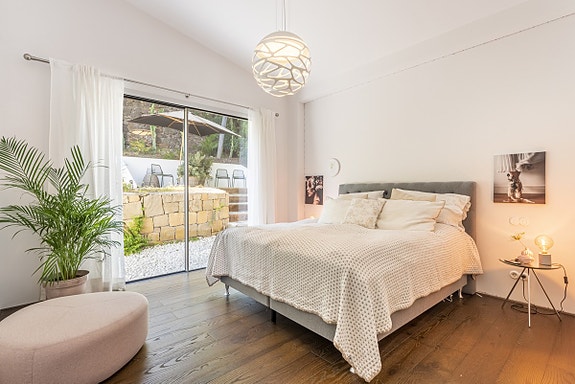 Denne lekre villaen er nylig renovert og ligger i hjertet av Las Brisas. Villaen ligger på en opphøyd, sørvendt tomt som har en magisk utsikt over fjellene og havet. Denne villaen er perfekt for familier, eller deg som leter leter etter den spesielle arkitektoniske opplevelsen. Denne villaen tilbyr en unik stil og atmosfære, med høye kvaliteter, moderne vinduer og et nøye utvalgt dekor.