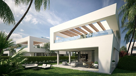 Luksuriøst lukket kompleks med 10 moderne frittstående villaer som ligger i San Pedro Beach, nær alle fasiliteter og kun 300 meter fra stranden.