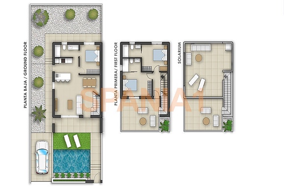 Disse flotte og romslige designervillaene ligger i landsbyen Pilar de la Horadada.Pilar de la Horadada ligger syd i Orihuela Costa, i et område med mange flotte sandstrender og golfbaner i nærområdene. Her er det et godt utvalg av lokale tjenester som f.eks medisinsk senter, moderne supermarkeder, og et stort utvalg av barer og restauranter.