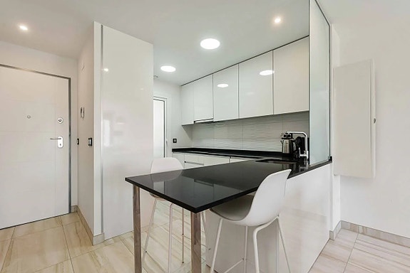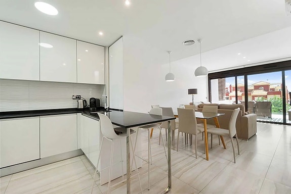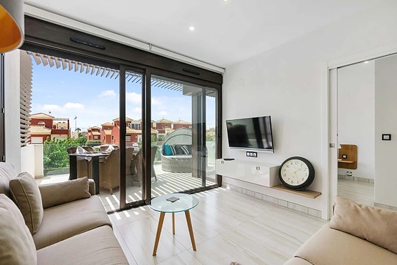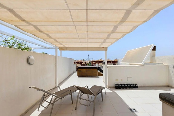 Rett ved sjøen i fantastiske Las Higuericas i Torre de la Horadada ligger denne nøye vedlikeholdte sørvendte toppleiligheten med privat takterrasse og havutsikt.