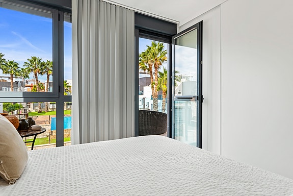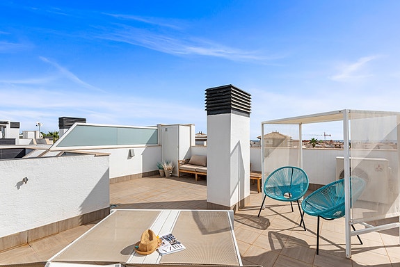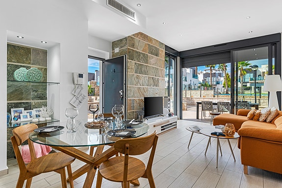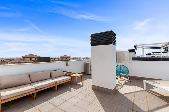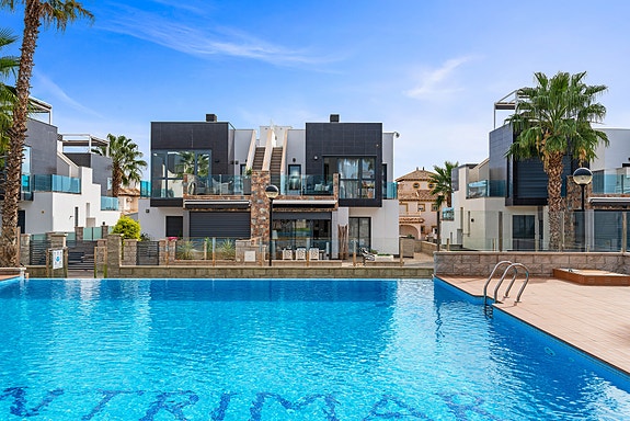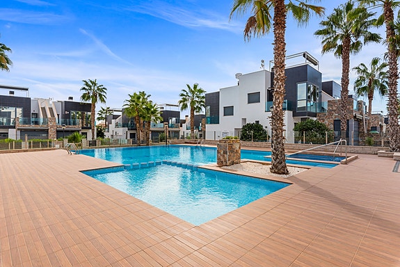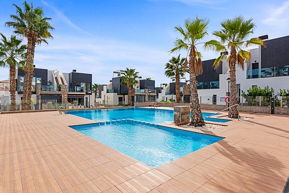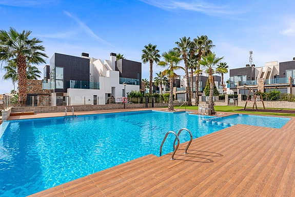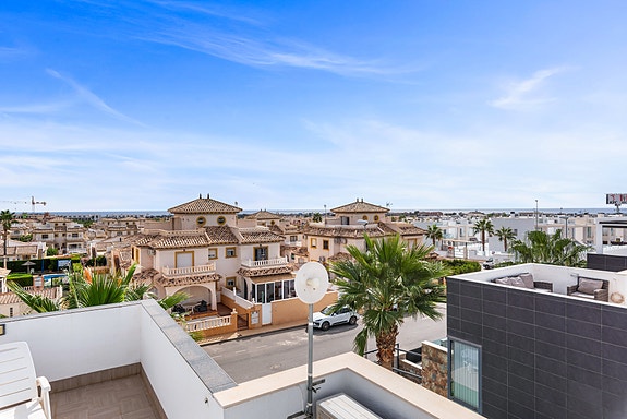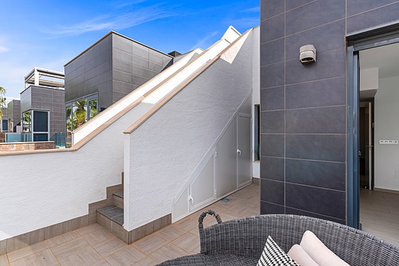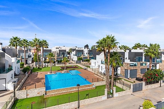 Lomas de Cabo Roig er et meget ettertraktet og populært boligområde som tilhører kystkommunen Orihuela Costa, like sør for La Zenia, 50 km fra Alicante flyplass, 50 km fra Murcia flyplass og 10 km fra Torrevieja by. Området er spesielt kjent for sine sjarmerende hvite strender og velholdte strandpromenade som tar deg titalls km langs middelhavet. Zenia Boulevard, et av Spanias største kjøpesenter ligger kun et par minutter med bil unna. Cabo Roig Marina er en av de beste marinaene på Costa Blanca kysten med over over to hundre fortøyningsplasser, flere flotte restauranter med nydelig utsikt over middelhavet – et idyllisk sted å starte dagen med god frokost og en kopp kaffe! Det finnes en rekke aktiviteter for slik som leie av båter, jet ski, kajakk og aktiviteter for barn. Hvis du er på jakt etter bolig på det sørlige Costa Blanca, et område med sunt mikroklima og liv året rundt kan dette være noe for deg.Rekkeguset ligger kun en kort spasertur fra fasiliteter som barer, butikker, restauranter, supermarked og det lokale bussholdeplassen. De gylne strendene Campoamor og Cabo Roig ligger bare 5 minutters kjøring unna, og det samme gjør tre flotte golfbaner. Alicante flyplass ligger 45 minutters kjøring unna, og Murcia Covera flyplass ligger bare 40 minutters kjøring unna.