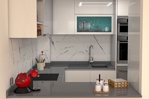 Leilighetene har delvis åpne stue- og kjøkkenområder, to soverom med innebygde garderober og eget bad i hovedsoverommet.