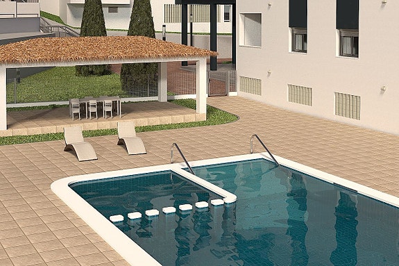 Fasiliteter inkluderer et felles svømmebasseng, hageområde, pergola, sosialt område med benker, treningsrom og parkeringsmuligheter, inkludert lading for elektriske kjøretøy.