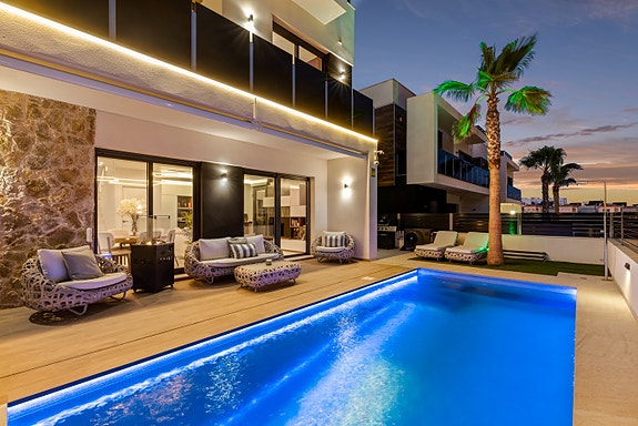 Stilren villa med 3 soverom, 4 bad og eget basseng topp standard og flott plassering
