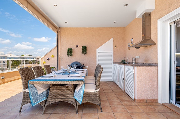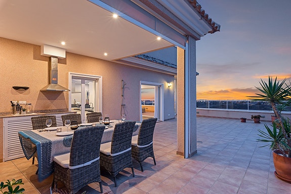 På denne terrassen er det installert et utekjøkken, som gjør grillingen til en enda bedre opplevelse!