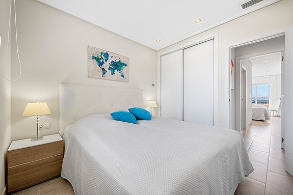 Her er det også en åpen kjøkkenløsning, som gir en større romfølelse. Kjøkkenet har toppmoderne hvitevarer, vinskap, store benkeplater og rikelig med lagringsplass.Leiligheten har totalt 4 soverom. Hovedsoverommet er over gjennomsnittet stort og har ekstra skapplass, king-size-seng, eget bad og tilgang til terrasse.