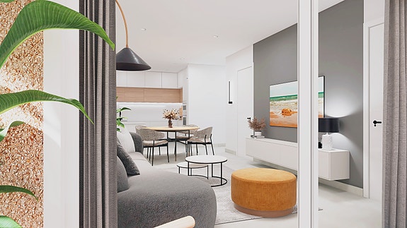 Dette er et nytt leilighetskompleks i El Raso, bare en kort kjøretur til strendene i Guardamar. Leilighetene inneholder 3 soverom med innebygde garderober, 2 delikate bad, lys og luftig stue med åpen kjøkkenløsning, romslig terrasse med direkte tilgang via store skyvedører fra stuen. Her kan du velge leilighet på bakkeplan med egen hage, leilighet i mellometasjer med store terrasser eller leilighet på toppen med privat takterrasse.På det flotte fellesarealeter det grøntområder og basseng, lekeplass for barn, treningsfasiliteter, Petanque baner, Spa og putting green for golfere. Alle leilighetene har privat parkeringsplass i underetasjen.