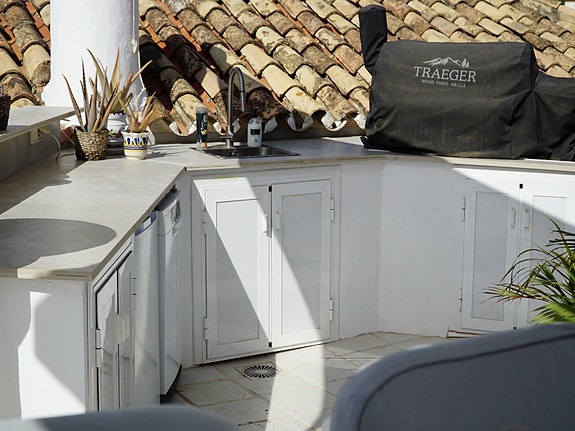 Leiligheten ble fullstendig renovert i 2021 og tilbyr moderne og stilfulle interiører.Eiendommen har en fantastisk 180 graders panoramautsikt over havet. Høydepunktet er takterrassen på 80m2 med fasiliteter som jacuzzi, et fullt utstyrt utendørs kjøkken og en grill. Dette gir en ideell setting for avslapning og underholdning mens du nyter den fantastiske utsikten. Den store terrassen bidrar til sjarmen på eiendommen, og gir en ekstra plass for utendørs glede. Med sin privilegerte beliggenhet og moderne funksjoner presenterer denne penthouse-leiligheten en perfekt kombinasjon av komfort og luksus.