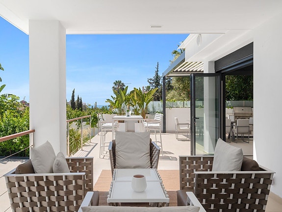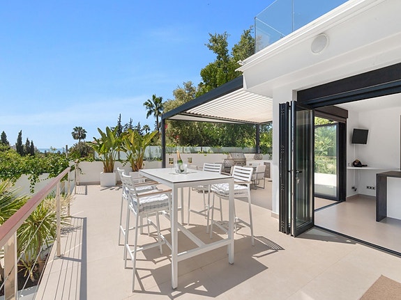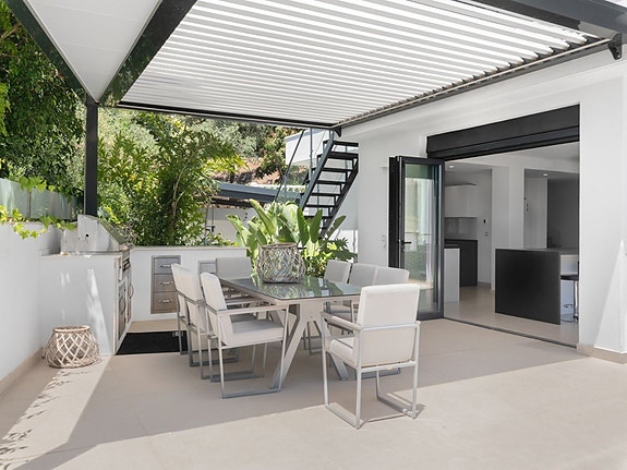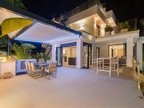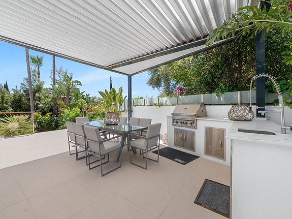 En utrolig vakker villa, plassert i det svært ettertraktede inngjerdede samfunnet El Rosario med 24 timers sikkerhet. Villaen ligger tilbaketrukket i en rolig blindvei øverst i en privat oppkjørsel.