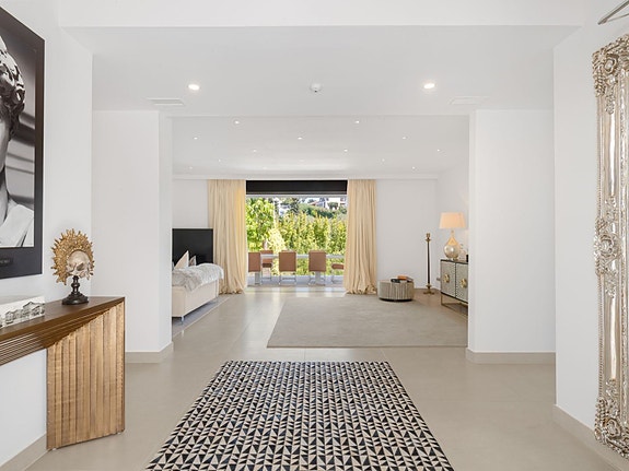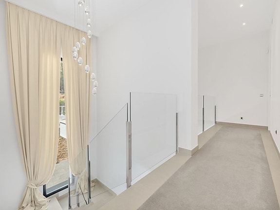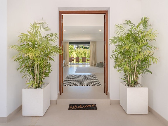 Ved inngangen til villaen gjennom solide doble tre sikkerhetsdører er det en vakker gang med mye naturlig lys som nyter godt av dobbel takhøyde og vindu over.