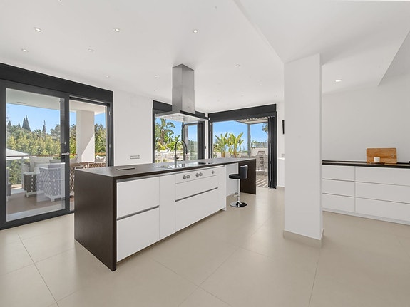 Villaen har stort og åpent kjøkken med et stort kjøleskap, ismaskin, to integrerte ovner (1 dobbel størrelse), integrert kaffetrakter og separat område for matlaging.