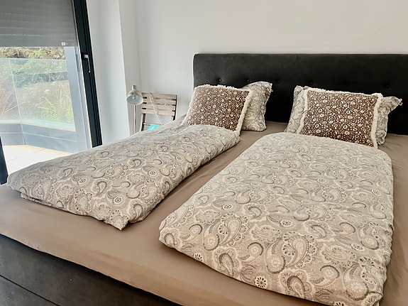 Ny leilighet | 4 soverom | Gå til strand | Flott fellesområde med hage og basseng | Parkering og bod