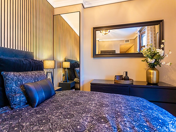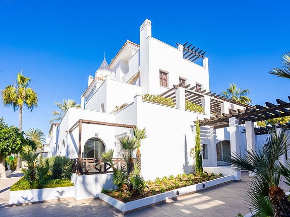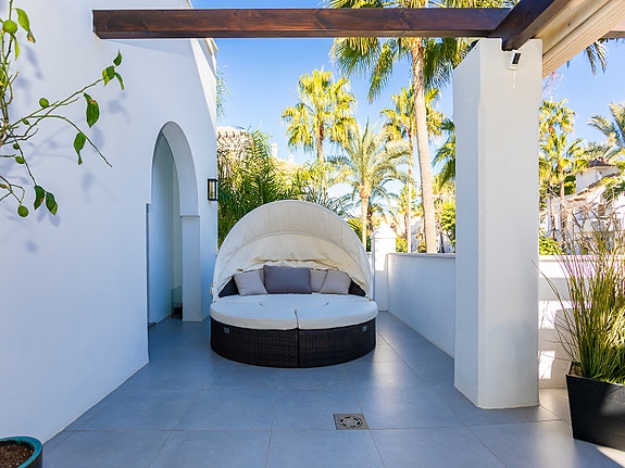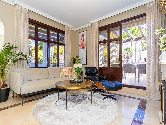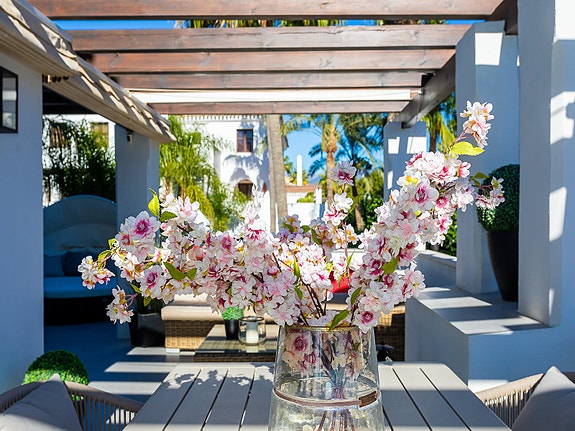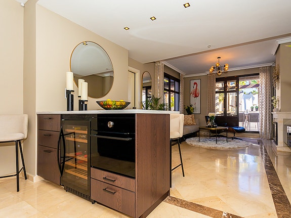 Ro i omgivelsene står i kontrast til den livlige atmosfæren i Puerto Banus, som kun er en 8-minutters kjøretur unna. Puerto Banus er berømt for sin eksklusive marina, designerbutikker og pulserende natteliv. Det travle shoppingmiljøet, gourmetrestauranter og underholdningstilbud gjør det til en ettertraktet destinasjon på Costa del Sol.Marbella, juvelen på Costa del Sol, er kjent for sin pittoreske gamleby, luksuriøse resorts og vakre strender. Denne byen fletter sammen luksuslivet med en omfattende kulturarv, og skaper en enestående kombinasjon av raffinement og sjarm.AVSTANDER:
