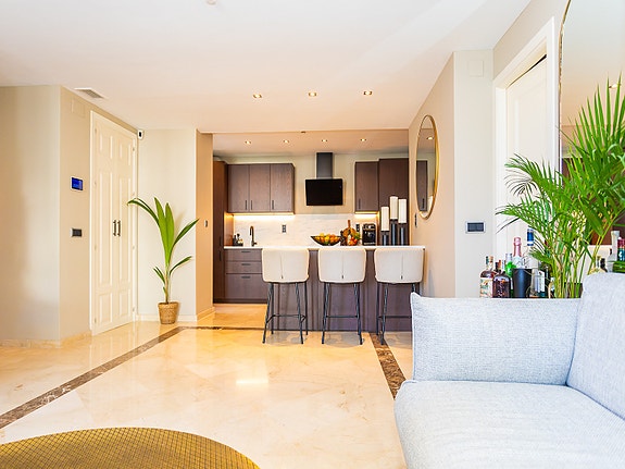 Eksklusiv strandnær leilighet i det prestisjetunge området nær Puerto Banus. I det inngjerdede og rolige komplekset "PRIVILEGIO DE MARBELLA," vest for Puerto Banus, gir denne luksuriøse leiligheten deg en eksklusiv kystlivsstil.