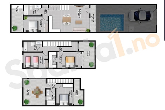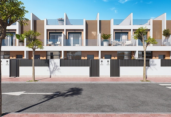Moderne rekkehus med 3 eller 4 soverom i San Pedro med kort gangavstand til fasiliteter. Eget basseng og takterrasse. Utbygging bestående av 18 rekkehus beliggende i sjarmerende San Pedro del Pinatar. Husene ligger etablert og rolig boligområde, nære både restauranter og butikker, stranden og sportsenter. Boligene med 3 soverom og 2 bad. Moderne med åpne løsninger. Privat basseng, terrasse,parkeringsplass, romslig takterrasse og hage hvor du kan nyte solen hele året.
