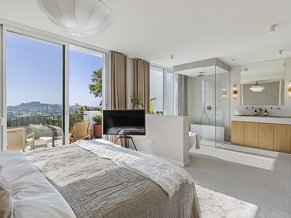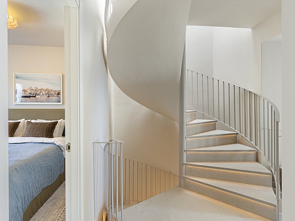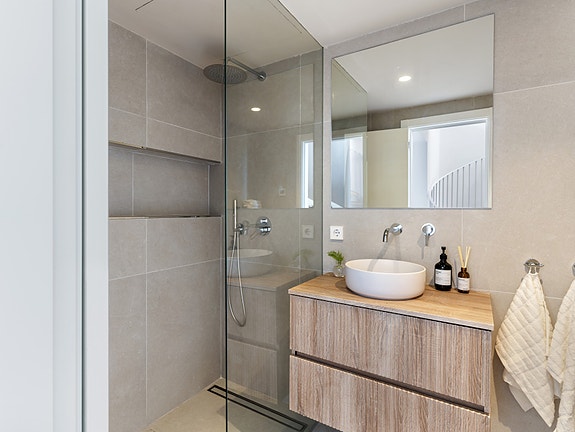 1. etasje består av ett soverom, bad og åpen stue - spisestue med tilgang til hagen og terrassen. I andre etasje er det 3 soverom, hvor hovedsoverommet har eget bad og terrasse. I tredje etasje er det en stor takterrasse med integrert BBQ/kjøkkenområde med fantastisk utsikt over kysten og fjellene.Vil du vite mer?