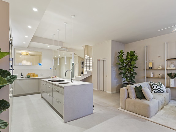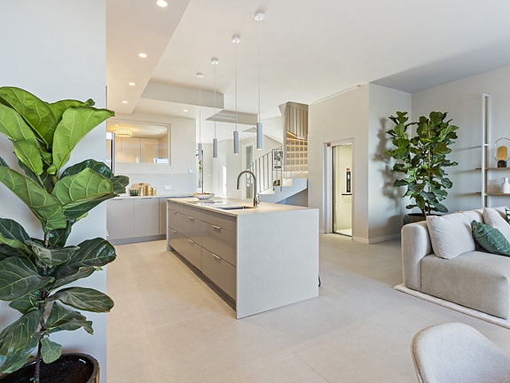 Rekkehuset er fordelt over 3 etasjer med heis installert for enkel tilgang mellom etasjene.