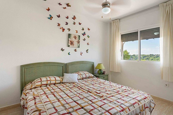 Leiligheten har 3 soverom, 2 bad og en åpen planløsning. I underetasjen er det stue, kjøkken og et bad. Fra stuen har du direkte utgang til terrasse med en nydelig havutsikt. I andre etasje er det tre soverom med innebygde garderober og ett bad. Ett soverom har utgang til egen terrasse. I leilighetskomplekset er det et herlig fellesbasseng hvor du kan kjøle deg ned på varme dager. Det er også flere grøntområder og en lekeplass for de minste. Her bor du kun 200m til stranden og den deilige promenaden som strekker seg over kysten av Orihuela Costa. Her har du nærhet til alt du måtte trenge; golfbaner, kjøpesentre, skandinaviske butikker, markeder og mange gode restauranter.