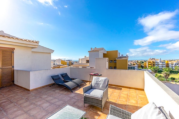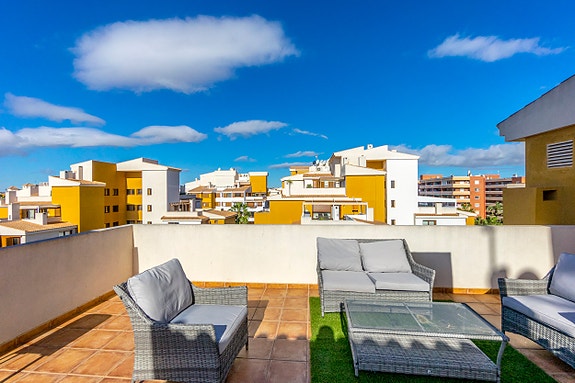 Punta Prima er et veletablert boligområde i kystkommunen Orihuela Costa, som ligger kun 3 km sør for Torrevieja og 45 km fra Alicante flyplass. Dette området har en solid infrastruktur med et stort utvalg blant restauranter og butikker. Et av Spanias største utendørs kjøpesentre (Zenia Boulevard) ligger like i nærheten. Området er ellers kjent for sine kritthvite sandstrender med “blå flagg” stempel, en indikasjon på blant annet høy vannkvalitet. Det finnes gode bussforbindelser som tar deg med nedover langs kysten eller inn til Alicante sentrum.Avstand