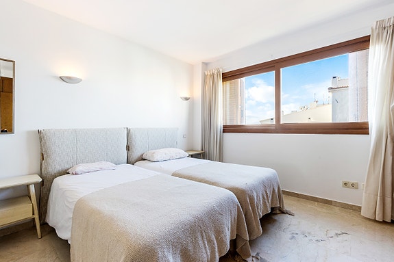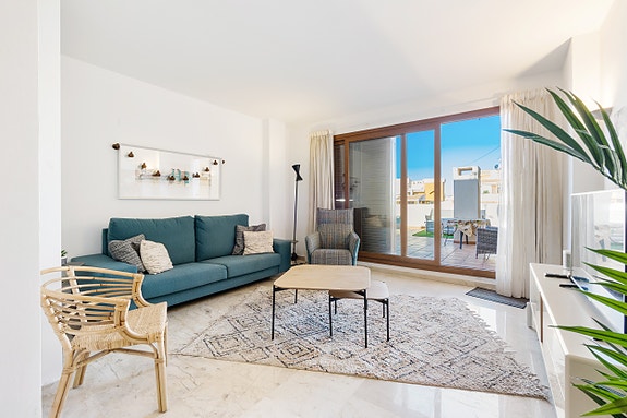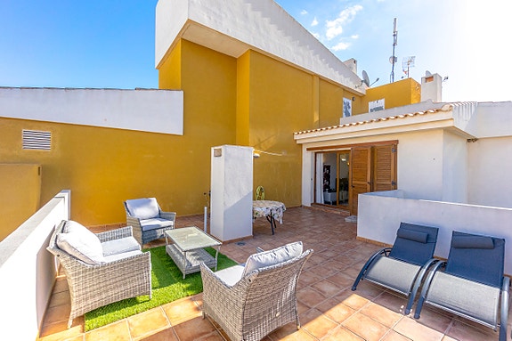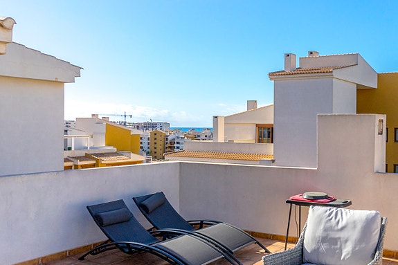 Spania1 har gleden av å presentere denne toppleiligheten kun noen få meter fra sjøen. Eiendommen vender mot sør og har en stor stue-spisestue, åpen kjøkkenløsning og to soverom og to bad (ett av dem en-suite). I tillegg har den en stor terrasse på 48m2 med utsikt over kompleksets fellesarealer.Leilighetskomplekset har en middelhavsstil med flere fellesbassenger og store grøntområder. Boligen har underjordisk parkering, bod og 24-timers privat vakthold. Leiligheten ligger også bare 300 meter fra stranden i Cala Piteras og Punta Prima.