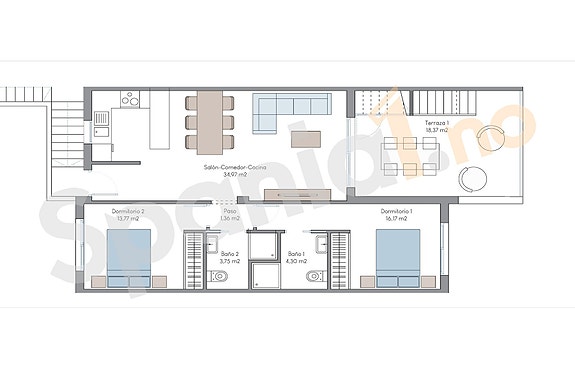 Ferdigstilt juni 2025Los Balcones er et veletablert område 45 minutter sør for Alicante flyplass og 30 minutter nord for Corvera (Murcia) flyplass. Dette prosjektet ligger på en liten høyde med flott utsikt mot saltsjøene og Torrevieja. Det er gangavstand til matbutikk, restauranter, cafeer, spa-hotell med gym og innendørs basseng, tennisbane mm. Det tar cirka 5 minutter å kjøre til nærmeste strender og rundt 10 minutter til det store kjøpesenteret i La Zenia.Avstand