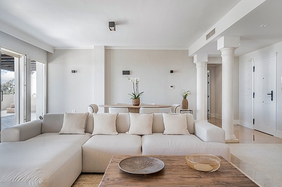 Denne fantastiske penthouse-leiligheten, har beliggenhet i den eksklusive Condado de Sierra Blanca urbanisasjonen i Marbella. Leiligheten er omgitt av naturlig grønne områder og fantastisk havutsikt. Sierra Blanca er et eksklusivt boligområde i Marbella på Costa del Sol i Spania. Det som gjør Sierra Blanca unikt, er dens beliggenhet ved foten av Sierra Blanca-fjellene, som gir en fantastisk utsikt over Middelhavet og Marbellas Golden Mile. Her finner du imponerende villaer og luksuriøse eiendommer med store tomter og vakker arkitektur. Området ligger ca. 300 meter over havet, og den høye plasseringen gir mange av eiendommene spektakulær utsikt over kysten. Sierra Blanca er populært på grunn av sin nærhet til Marbella sentrum, stranden og den glamorøse havnen Puerto Banús.