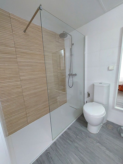 I denne etasjen har man tilgang til en innglasset terrasse ved inngangen, ideell for et vaskerom, og med tilgang til resten av terrassen via en glassdør.