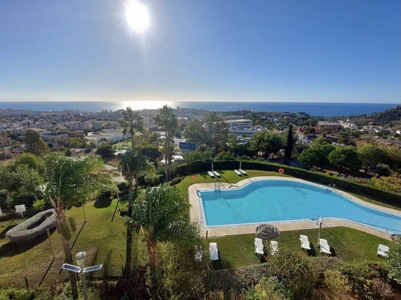 Denne flotte penthouse leiligheten som går over to plan ligger i en eksklusiv urbanisajonen i Benalmadena og med kun 15 min. gangavstand til den koselige Benalmadena Pueblo.