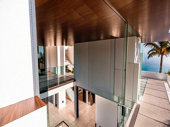Denne sofistikerte høyborgen er ytterligere forsterket med omfattende sikkerhetsfunksjoner, inkludert 24-timers overvåkingstjenester, strategisk plasserte overvåkingskameraer som omslutter villaen, en bevoktet inngang og nøye videoovervåking.