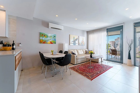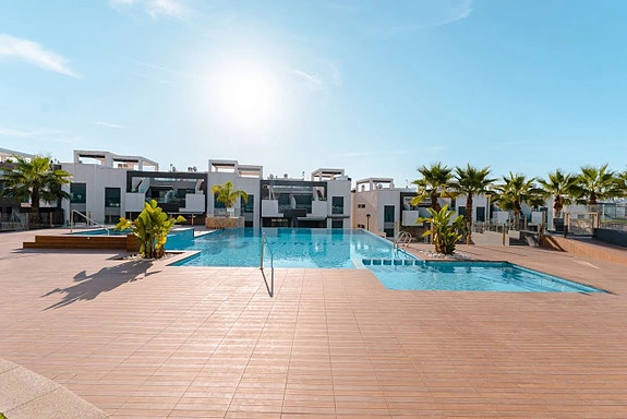 Spania1 har gleden av å presentere denne flotte leiligheten i det populære komplekset Oasis Beach VIII. Her bor du fredelig med nærhet til et stort tilbud av tjenester som apotek, dagligvarebutikker og restauranter og en kort kjøretur til det store kjøpesenteret La Zenia Boulevard med sine 150 butikker og butikker.