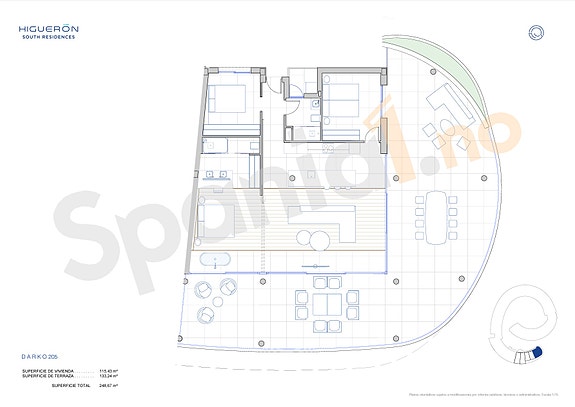 Her har du nå muligheten til å få eierskap i en svært eksklusiv leilighet, omgitt av det ypperste som tilbys på Costa del Sol.Denne leiligheten ligger i endevingen i annen etasje av South Residences' fremste Darko-bygning, med en avskjermet terrasse på 133 m², vakker utsikt utover Middelhavet, og som nærmeste nabo til den fredete grønne dalen nedenfor. Her kan du nyte alle fasilitetene som South Residences og Higueron har å by på i din egen eksklusive villa leilighet, men til en brøkdel av prisen. For dem som søker eventyr og konkurranse innfrir Higueron alle ønsker, med førsteklasses treningssenter, padelbaner, golfbaner, tennisfasiliteter og turstier. Nyt solen på stranden eller ved et av South Residences' tre store bassengområder, og slapp av om kvelden med dine kjære på en av de mange flotte restaurantene. Málagas historiske gater ligger mindre enn 20 minutter unna, og du når luksuriøse Marbella på 25 minutter.