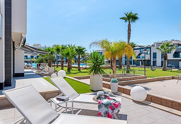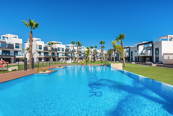 Spania1 har gleden av å presentere denne nydelige leiligheten i komplekset Oasis Beach i Guardamar.