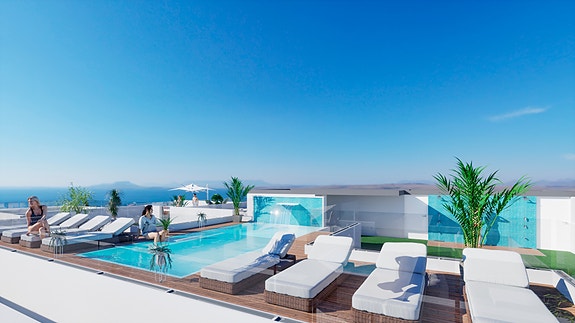 Komplekset har også en takterrasse med svømmebasseng, badstue og avslapningsområde med fantastisk havutsikt.