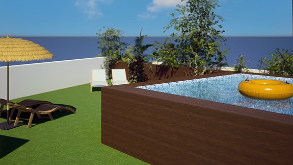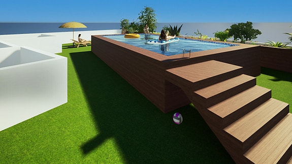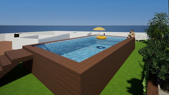Boligene har også en felles takterrasse med svømmebasseng og avslapningsområde.