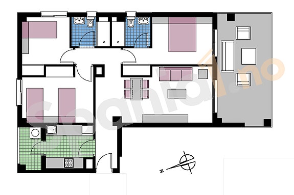 Hjørne-toppleilighet med stor takterrasse - Moderne standard - 3 soverom og 2 bad - Felles basseng