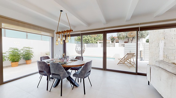 Spania1 har gleden av å presentere fem helt nye frittliggende villaer med 3 soverom og 2 bad. Villaene er innredet i Ibiza-stil og det er valg mellom tre ulike modeller. Hver villa ligger på en romslig tomt med parkering og privat svømmebasseng.
