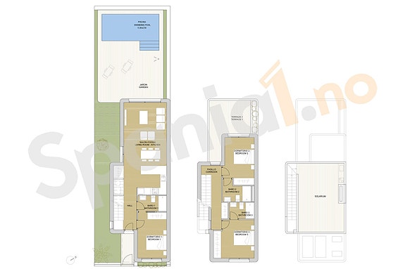 Nytt villaprosjekt med 3 boliger med 3 soverom og 3 bad, takterrasse og hage med basseng.