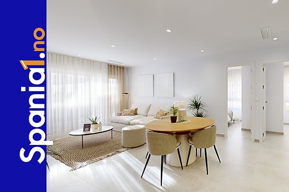 Dette er et nytt leilighetskompleks i El Raso, bare en kort kjøretur til strendene i Guardamar. Leilighetene inneholder 3 soverom med innebygde garderober, 2 delikate bad, lys og luftig stue med åpen kjøkkenløsning, romslig terrasse med direkte tilgang via store skyvedører fra stuen. Her kan du velge leilighet på bakkeplan med egen hage, leilighet i mellometasjer med store terrasser eller leilighet på toppen med privat takterrasse.På det flotte fellesarealeter det grøntområder og basseng, lekeplass for barn, treningsfasiliteter, Petanque baner, Spa og putting green for golfere. Alle leilighetene har privat parkeringsplass i underetasjen.