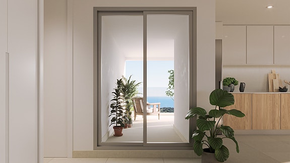 48 boliger i Cala de Mijas med 2 og 3 soverom, parkeringsplass og bod, svømmebasseng og treningsstudio.