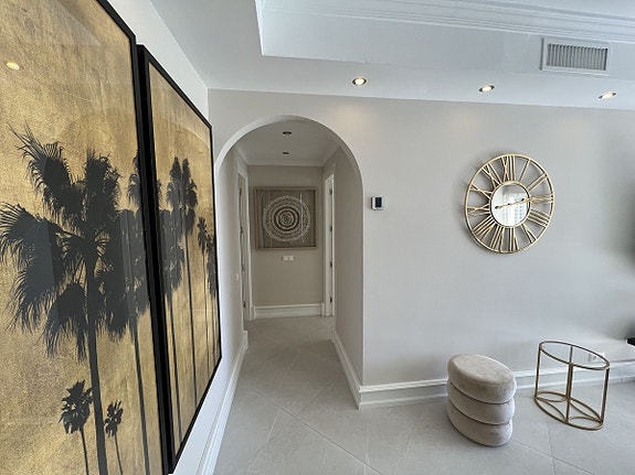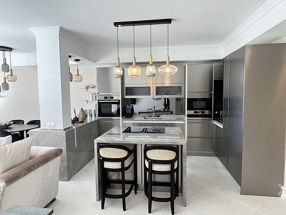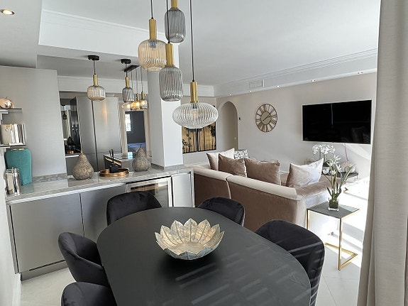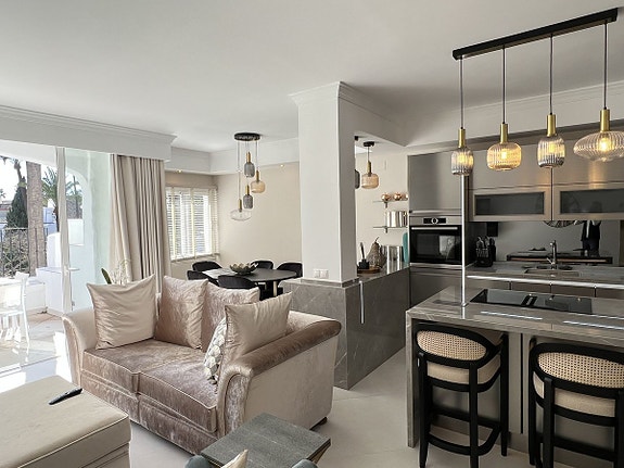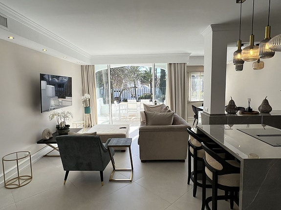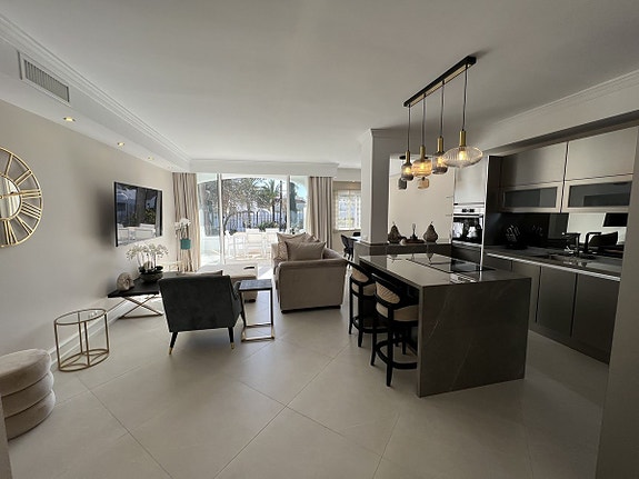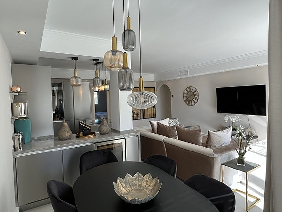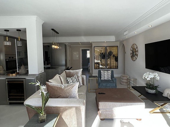 Denne luksuriøse leiligheten i Puerto Banus er nylig renovert, med åpent oppholdsrom, avansert kjøkken, tre soverom og tilgang til privat terrasse. I et lukket kompleks med svømmebasseng, hager og strandnær beliggenhet, tilbyr den sikkerhet og nærhet til shopping og marina. Ideell for de som ønsker en eksklusiv bolig på Costa del Sol.