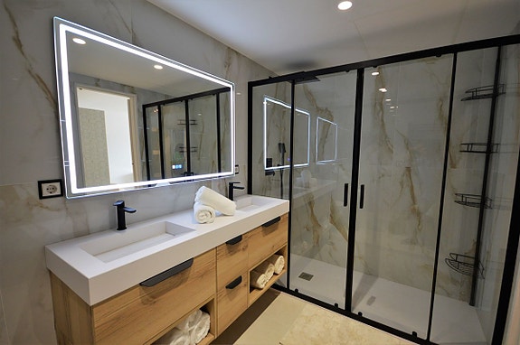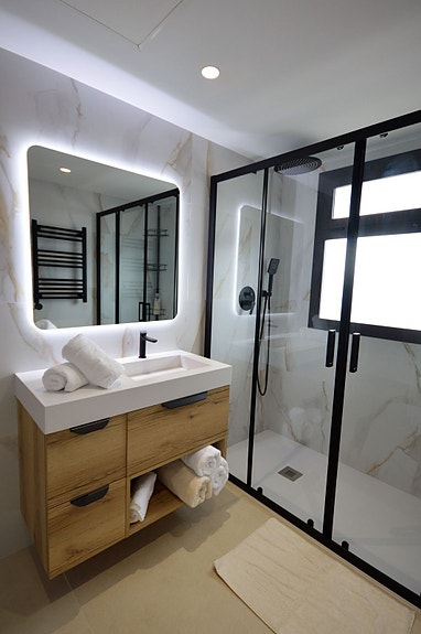 Fullrenovert leilighet av høy kvalitet, bare meter fra stranden i Marbella sentrum. Med nøye utvalgt designermøbler og skandinavisk stil, tilbyr denne leiligheten en stue med spisestue, åpent kjøkken med toppmerker, tre soverom med innebygde garderober og bad en-suite, samt ekstra gjestetoalett. Nyt fantastisk utsikt over Marbella gamleby fra stuen og terrasse med sideutsikt over Middelhavet. Promenaden, marinaen, gamlebyen og Plaza de los Naranjos er bare minutter unna til fots. I nærheten finner du også det nye Hotel El Fuerte med spa, aquagym og mer. En glimrende investering for de som ønsker et vakkert hjem i byens hjerte, komplett med moderne komfort. En sjelden mulighet som ikke vil vare lenge på markedet.