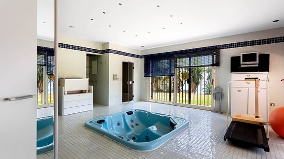 Villaen har en tomt på 10.000 m2 med en port ved inngangen og privat vei. Det er frukttrær og mye grøntområder tilgjengelig. Tomten ligger i et nabolag som hovedsakelig består av eneboliger. Det skaper et eksklusivt, svært privat område med mindre trafikk.