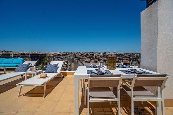 Hjørne-toppleilighet med stor takterrasse - Moderne standard - 3 soverom og 2 bad - Felles basseng