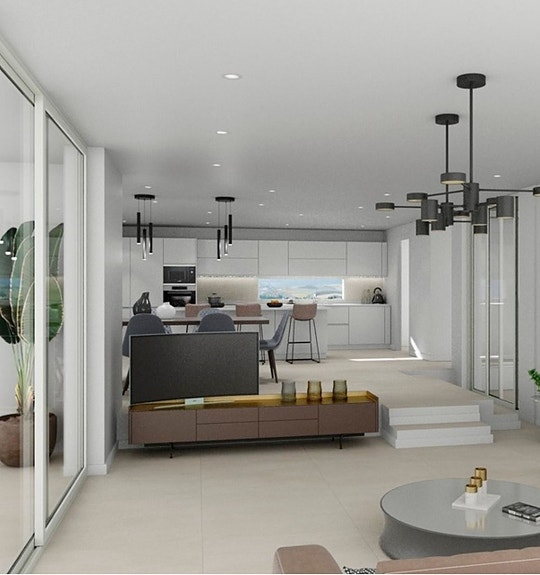 - Heis til alle etasjer, åpent kjøkken, stor terrasse, 12x3m saltvannsbasseng.