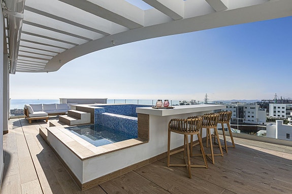 HAVUTSIKT! Eksklusiv penthouse-leilighet med gangavstand til strand | Takterrasse med privat basseng | Gym og SPA